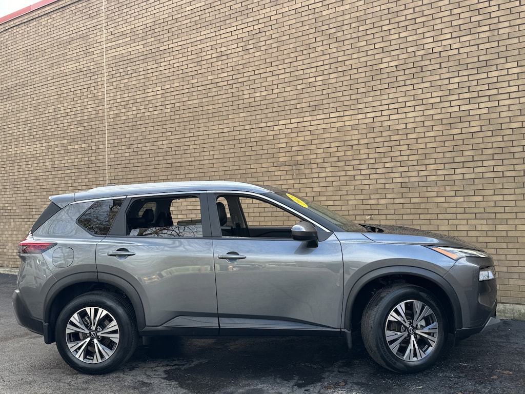 Gun Metallic 2023 Nissan Rogue SV AWD CVT with Xtronic 1.5L I3 Turbocharged DOHC 12V LEV3-ULEV50 201hp 1 OWNER CERTIFED CARFAX**, **LEATHER HEATED SEATS**, **ALLOY WHEELS**, **BACK UP CAMERA**, **CLEAN CERTIFIED CARFAX**, **ALL WHEEL DRIVE**, **PREMIUM SOUND SYSTEM**, **NON SMOKER**, **LOCAL TRADE IN**, **SUNROOF/MOONROOF**, **BLUE TOOTH/ HANDS FREE**, **I POD CONNECT**, AWD, AM/FM radio: SiriusXM, Automatic temperature control, Emergency communication system: NissanConnect Services, Front dual zone A/C, Heated Driver & Front Passenger Seats, Heated Leather Wrapped Steering Wheel, Leatherette Door Trim Inserts w/Stitch, NissanConnect featuring Apple CarPlay and Android Auto, Panoramic Moonroof, Power driver seat, Power Liftgate, PRIMATEX Leatherette Seat Trim, Rear Door Sunshades, Rear Personal Lights, Security Alarm, Silver Painted Roof Rails, SV Premium B Package.