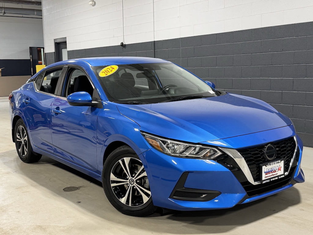 Electric Blue Metallic 2023 Nissan Sentra SV FWD CVT with Xtronic 2.0L DOHC 1 OWNER CERTIFED CARFAX**, **ALLOY WHEELS**, **BACK UP CAMERA**, **CLEAN CERTIFIED CARFAX**, **PREMIUM SOUND SYSTEM**, **NON SMOKER**, **LOCAL TRADE IN**, **BLUE TOOTH/ HANDS FREE**, **I POD CONNECT**, CVT with Xtronic, Charcoal Cloth, 6 Speakers, All-Weather Package, Blind Spot Warning, Dual Zone Auto Climate Control, Heated Front Seats, Leather-Wrapped Heated Steering Wheel, NissanConnect featuring Apple CarPlay and Android Auto, Radio: AM/FM w/RDS/MP3/Aux-In, Remote Engine Start.