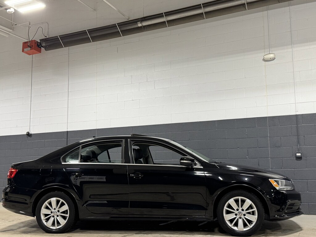 Black Uni 2015 Volkswagen Jetta 1.8T SE w/Connectivity FWD 6-Speed Automatic with Tiptronic 1.8L I4 DOHC Turbocharged **LEATHER HEATED SEATS**, **ALLOY WHEELS**, **BACK UP CAMERA**, **CLEAN CERTIFIED CARFAX**, **PREMIUM SOUND SYSTEM**, **NON SMOKER**, **LOCAL TRADE IN**, **SUNROOF/MOONROOF**, **BLUE TOOTH/ HANDS FREE**, **I POD CONNECT**, Cornsilk Beige Artificial Leather, Emergency communication system: VW Car-Net, Radio: Premium VIII Touchscreen w/6-CD.